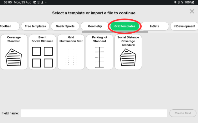 Select the field you want to scan by tapping it and press “Start”. (Be aware that it does not change color when you click on it, only a red dot appears)