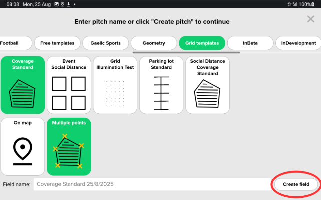 - 4 points need to be collected for e.g. a soccer field (on in each corners)