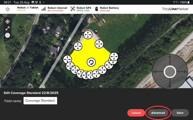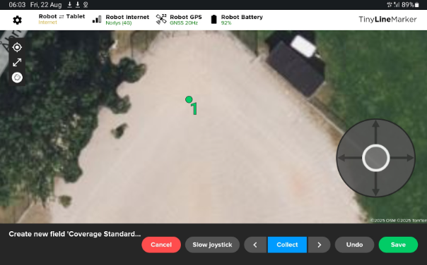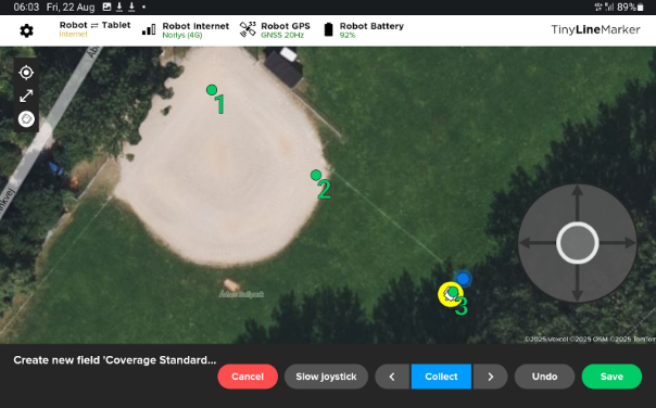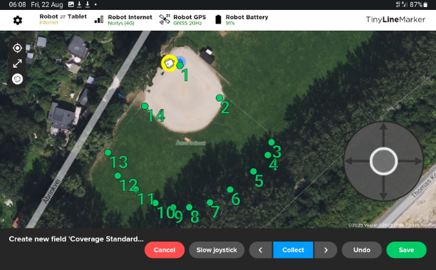 Collect points around the boundary of your field. Drive the robot to e.g. the home plate or a corner and start here: