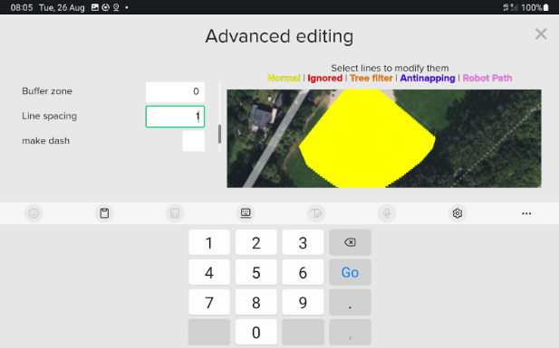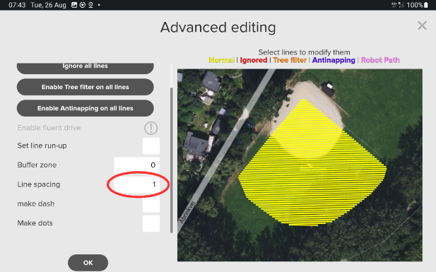 Ensure that the line spacing is set to 10 ft (3 meters). If it is not, adjust the setting in Advanced Editing:
