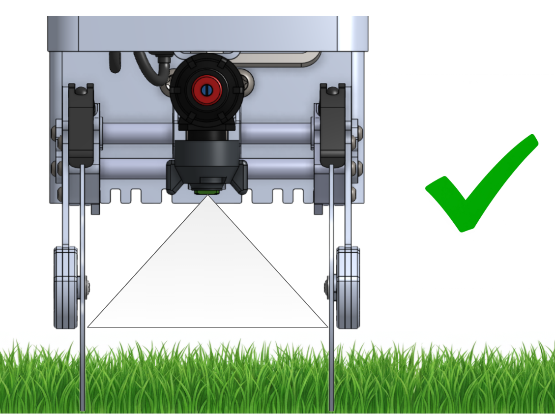 - Verify Spray Alignment: To ensure the height is correct, run a test spray. The spray from the fan nozzle should hit the exact center line of the disc. You can initiate a test spray using the robot's tablet interface or the yellow and blue buttons on the robot itself.