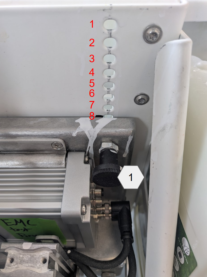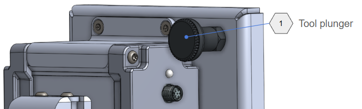 - Set Operating Height: Use the Tool Plunger (1) to adjust the tool's position on the robot. The plunger must be set in the 9th hole from the top. This means you will see 8 holes visible above the plunger.