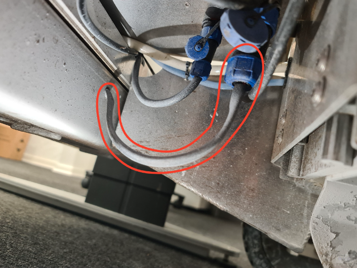 2. Controlla il cavo situato sotto il robot, che collega il binario della batteria, per assicurarti che non ci siano strappi o lacerazioni (Sport)